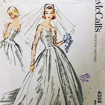 Vintage 1950s Mccall S Misses Bridal Wedding Gown Pattern 4358 Size 12 32 Bust Wedding Gown Patterns Gown Pattern Wedding Dress Patterns
